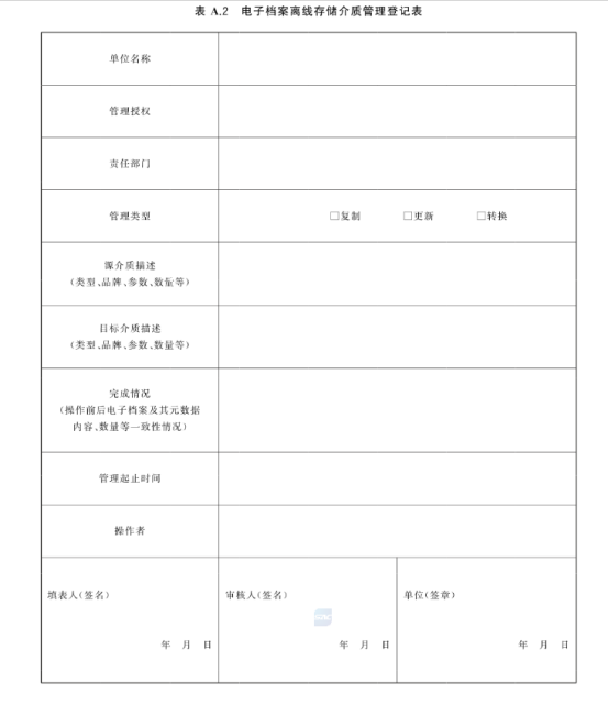 i) 確認(rèn)離線存儲(chǔ)介質(zhì)的復(fù)制、更新和轉(zhuǎn)換等管理活動(dòng)成功時(shí),再按照相關(guān)規(guī)定對(duì)原離線存儲(chǔ)介質(zhì)GB/T18894-2016實(shí)施破壞性銷(xiāo)毀。應(yīng)對(duì)離線存儲(chǔ)介質(zhì)管理活動(dòng)進(jìn)行登記,登記內(nèi)容參見(jiàn)表A2.