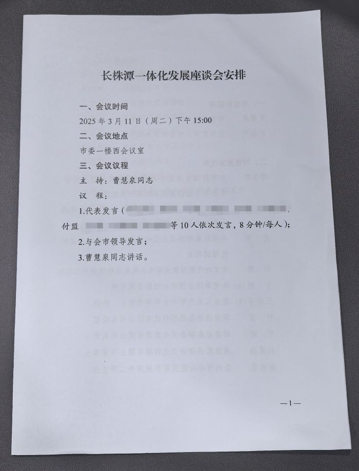 3月11日下午,我司總經(jīng)理付盟受邀參加了由市委書(shū)記曹慧泉主持召開(kāi)的長(zhǎng)株潭一體化發(fā)展座談會(huì)。