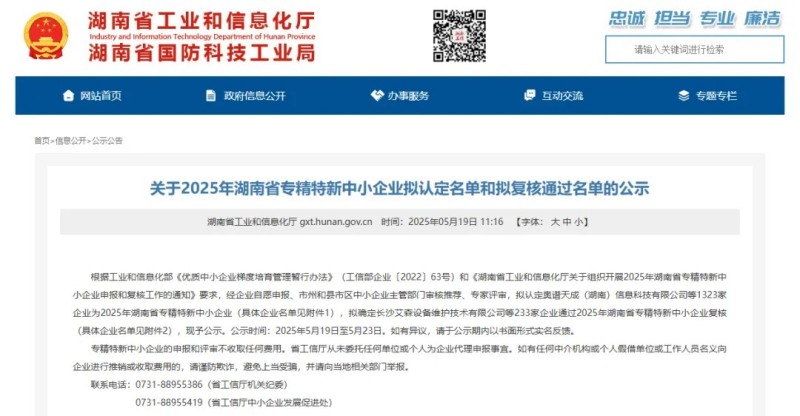2025年5月19日,湖南省工業(yè)和信息化廳官網(wǎng)正式公布了“關(guān)于2025年湖南省專精特新中小企業(yè)擬認(rèn)定名單和擬復(fù)核通過名單的公示”,我司憑借在檔案數(shù)字化領(lǐng)域的卓越表現(xiàn),成功通過認(rèn)定!這也是繼國家級高新技術(shù)企業(yè)之后,獲得的又一重要榮譽(yù)。
