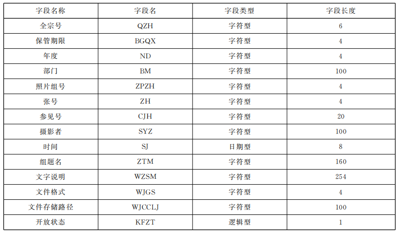 表 B. 1 數(shù)碼照片檔案目錄數(shù)據(jù)庫結(jié)構(gòu)及字段表