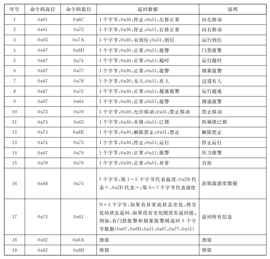 智能密集架控制器返回給固定列工控機(jī)的數(shù)據(jù)幀∶