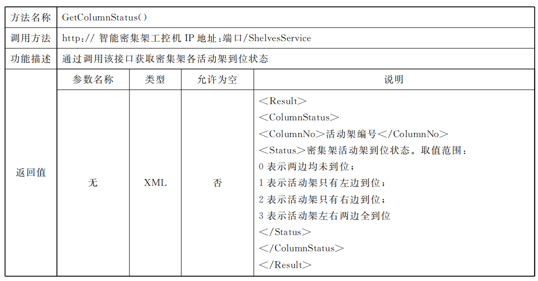 表 B.11 獲取密集架運(yùn)行狀態(tài)