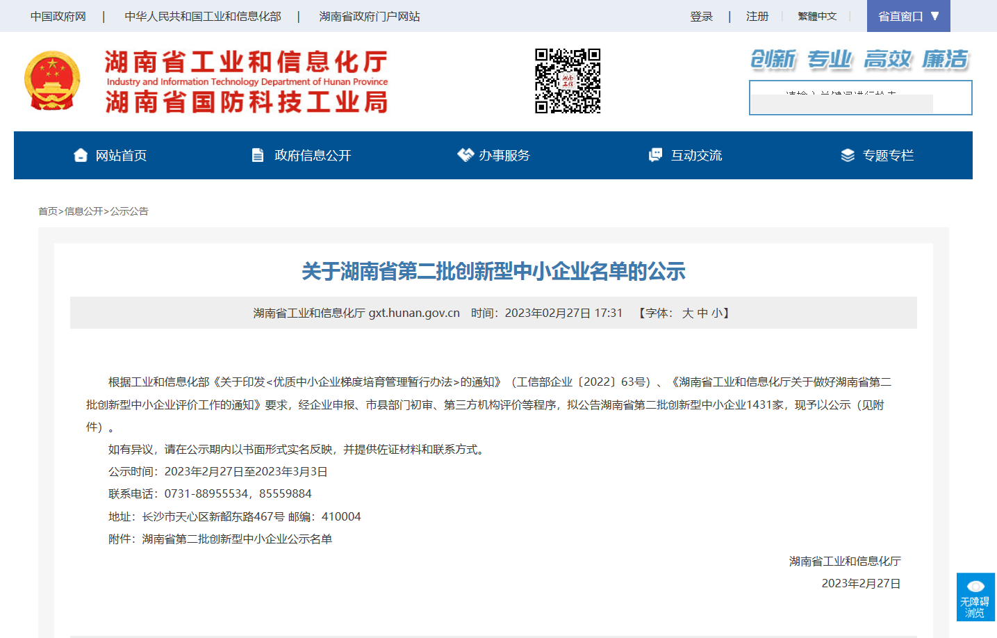 2023年2月27日,湖南省工業(yè)和信息化廳公告了全省第二批創(chuàng)新型中小企業(yè)名單,德爾斐科技成功入圍!